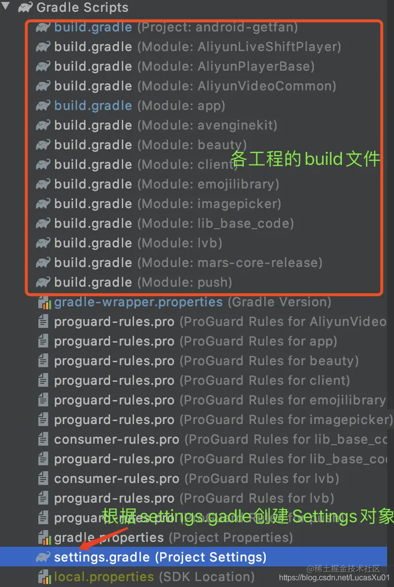 上图是一个常见的多组件工程的Gradle Scripts,以该工程的gradle构建为例。