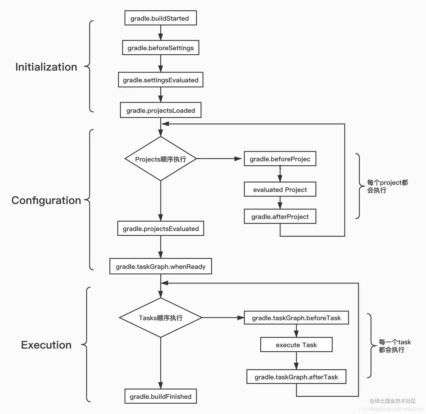 Gradle执行流程中上述方法的执行顺序如下: