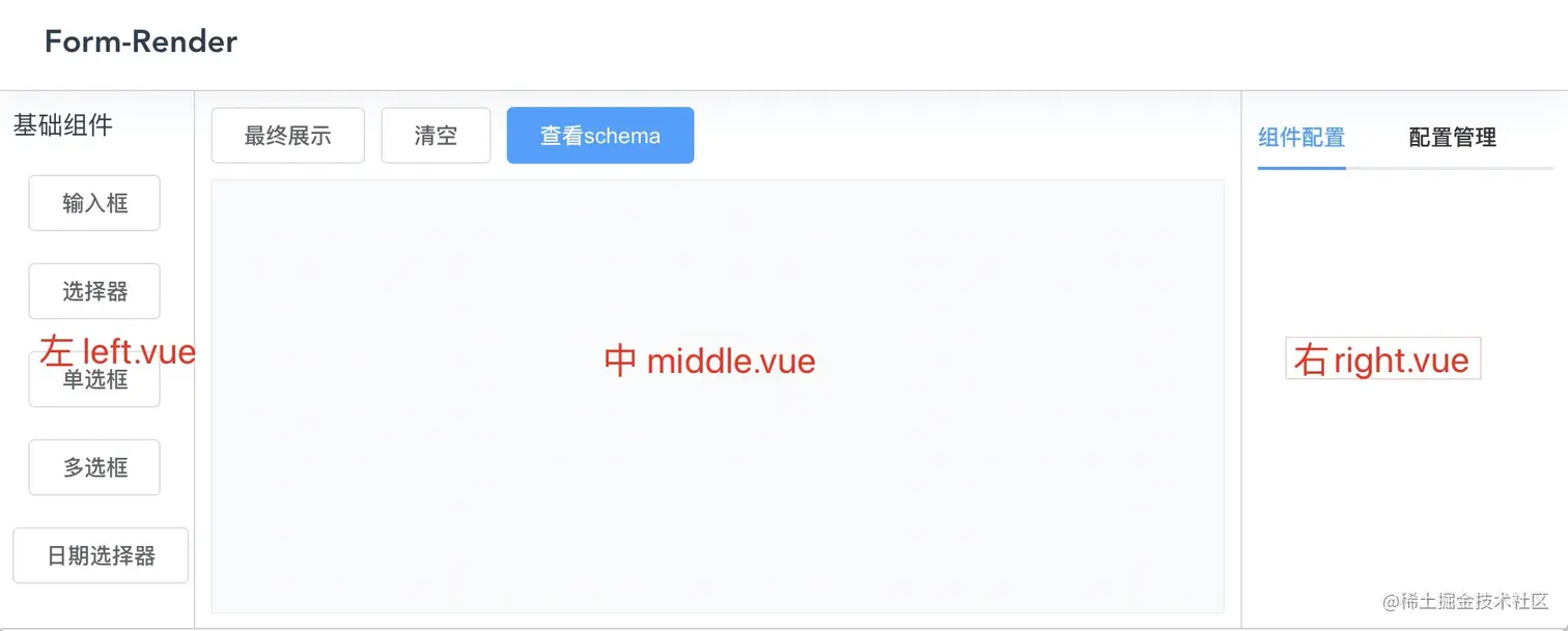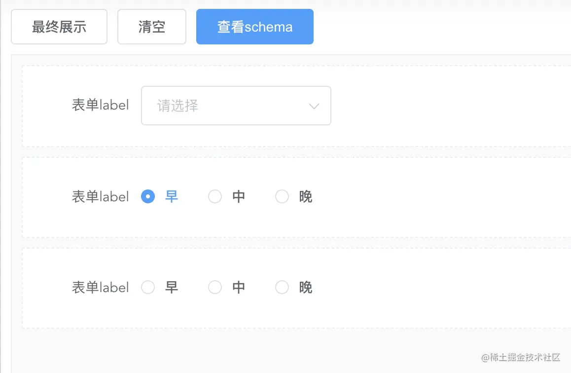 我们需要编写一个通用的render组件,在实际项目中,只要传入schema数据,即可生成对应表单,期待使用方式如下
