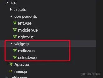 我们新建一个文件夹 widgets 用来编写需要重新的组件。示例项目中,我们只重写了两个组件。