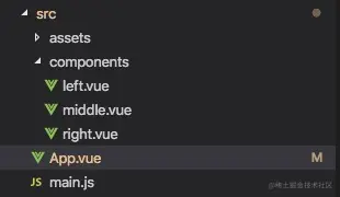 这里主要组件 分为左中右 三个组件,我们后续代码也在这三个组件中实现。
