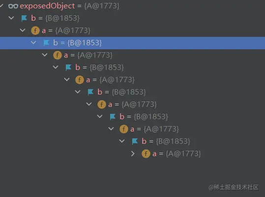执行结果,经测试可以解决,得到的对象是循环依赖的: