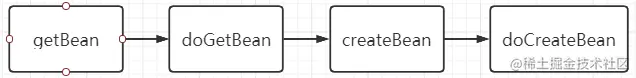 上图中有个关键点,在spring的源码中,通常会看到getBean,doGetBean等方法,在解决循环依赖过程中,重要的流程如下图所示: