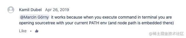 大致意思是用系统命令行工具启动sourcetree会将node环境变量带入其自带的命令行,所以可以获取到。