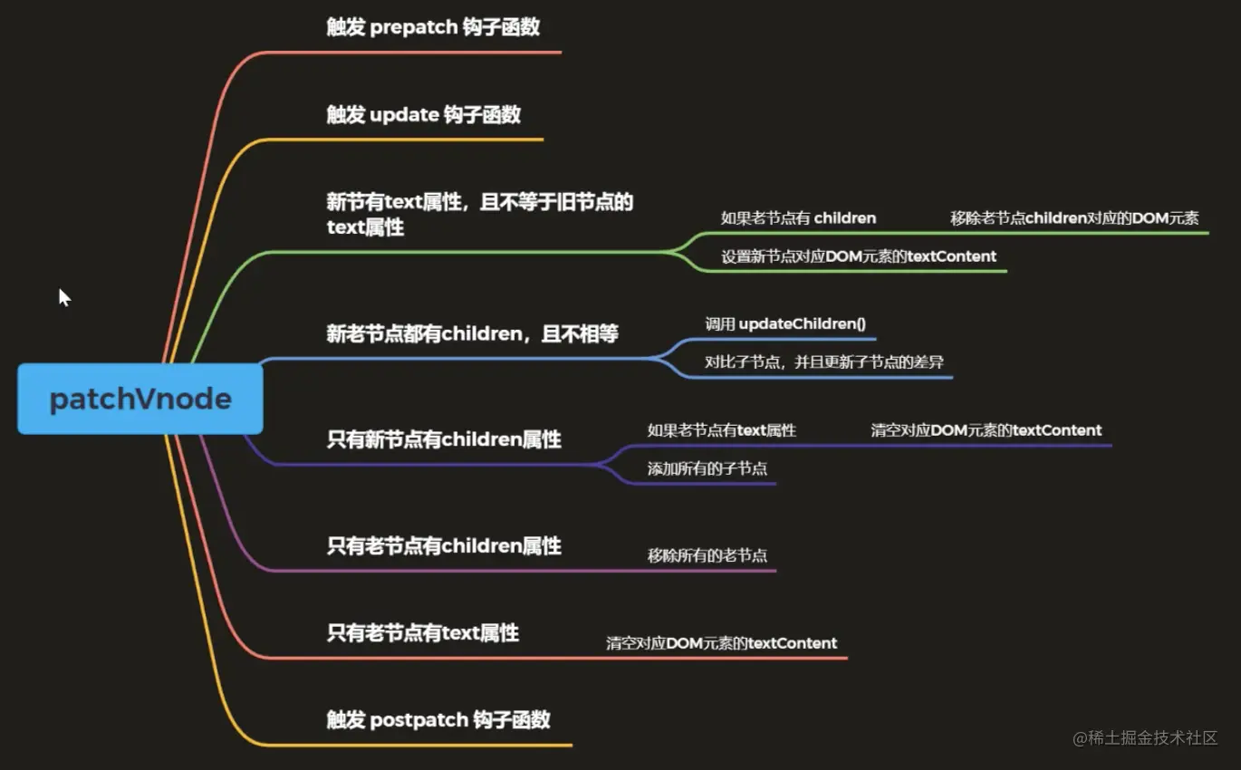 - 调用patchVnode()对比和更新节点