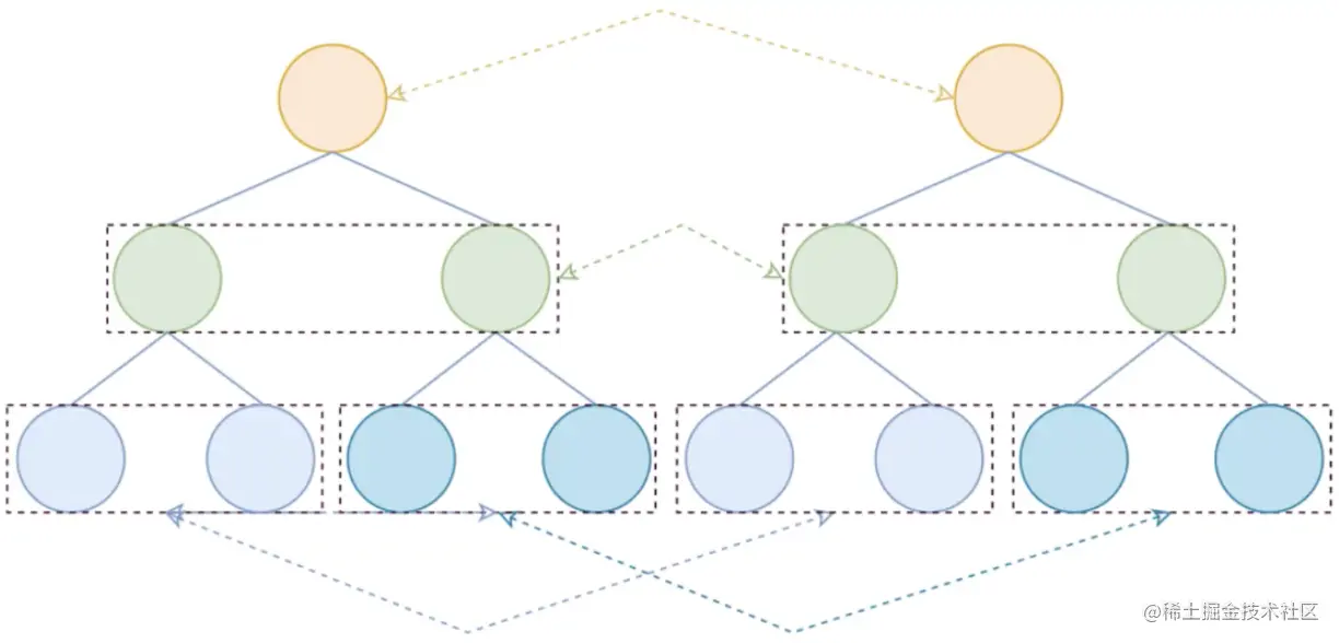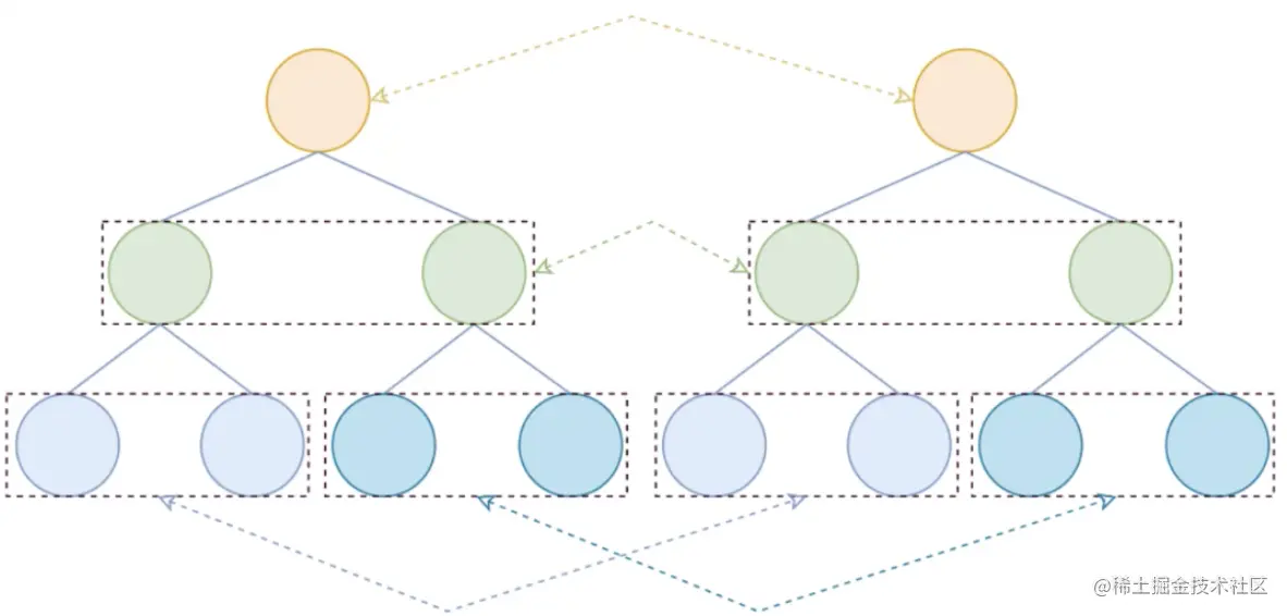 - 要对比两棵树的差异,我们可以取第一棵树的每一个节点依次和第二棵树的每一个节点比较,但是这样的时间复杂度为O(n^3)
