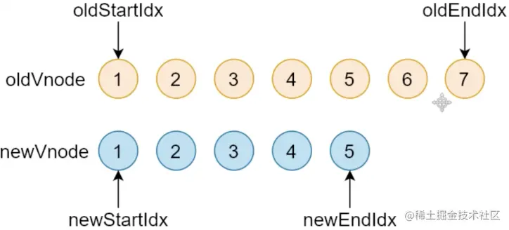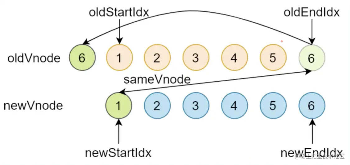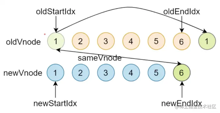 - oldStartVnode / newEndVnode(旧开始节点 / 新结束节点)