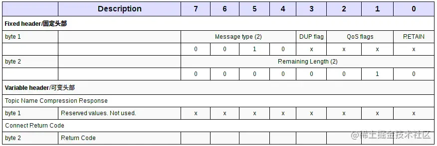 收到CONNECT消息之后,服务器应该返回一个CONNACK消息作为响应: