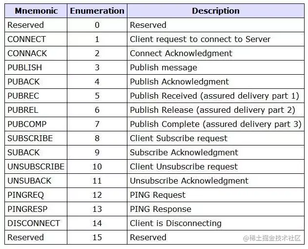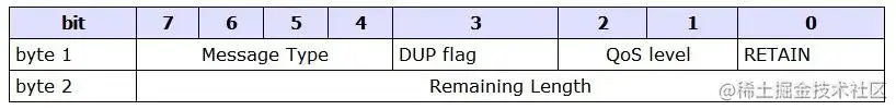 Byte 1 消息类型和标志字段,消息类型(4-7),使用4位二进制表示,可代表16种消息类型。