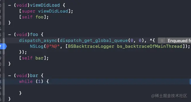我们采用BSBacktraceLogger示例demo中的调用方式如下: