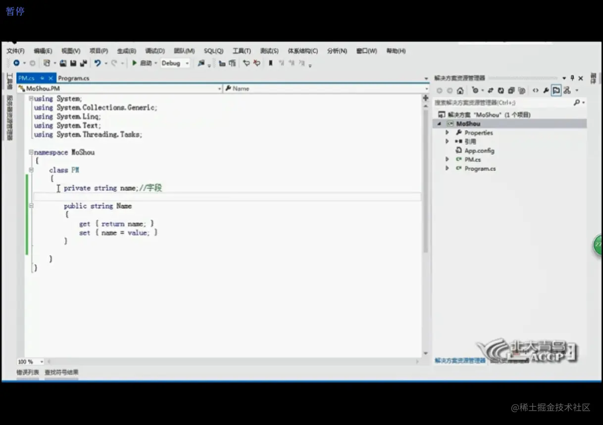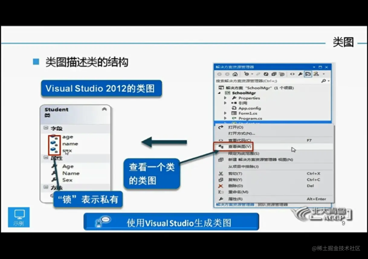 面向对象回顾 ifubing 2020-12-27 53 阅读1分钟 封装字段 字段设置为私有 属性为公有 具有get与set访问器 对属性进行逻辑验证 自动属性 演练 重构与封装字段 类图 有锁代表是私有的 查看类图 字段属性与方法 显示名称和类型 小结