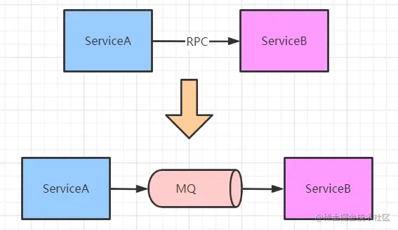将模块间的RPC调用改为通过消息队列中转,接触系统间的耦合。