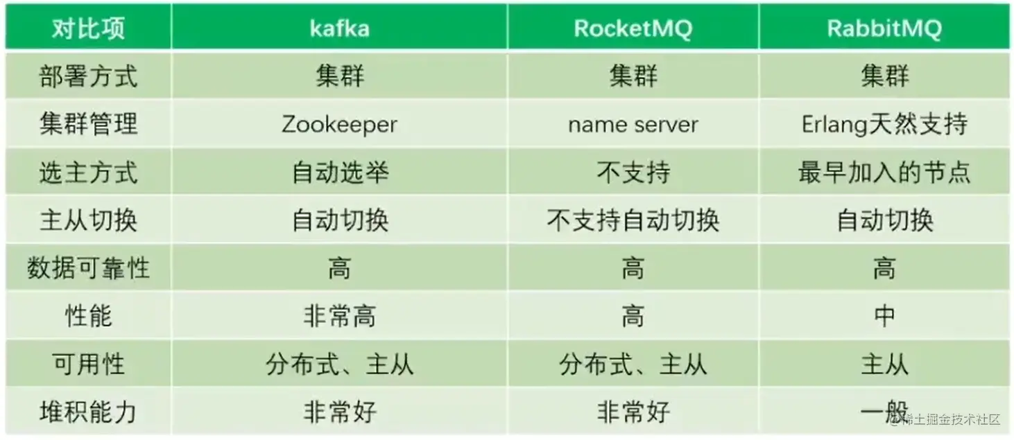 目前主流的MQ主要是RocketMQ,kafka,RabbitMQ,选型应当从如下几个维度来看: