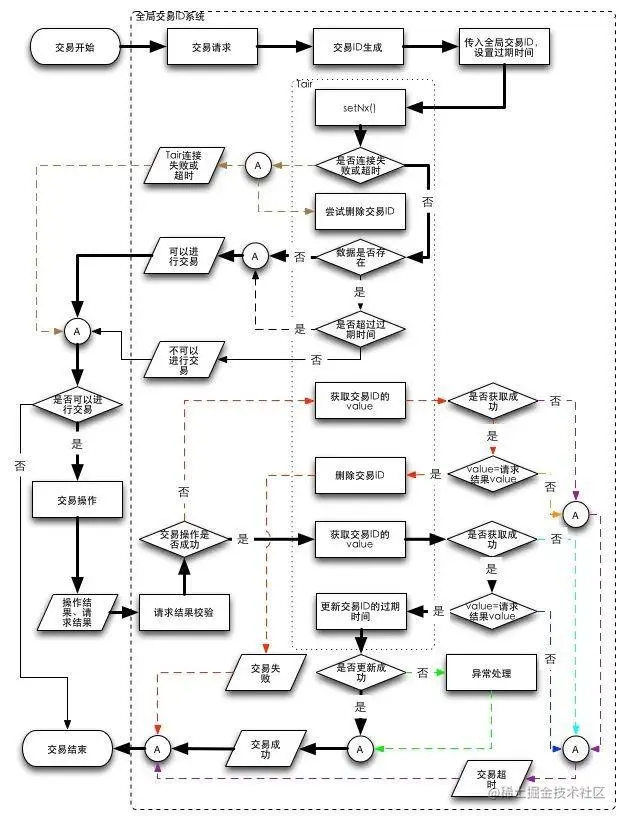 - GTIS将全局ID作为key,current_timestamp+transContents作为value放入Tair进行setNx,将结果返回给业务方;