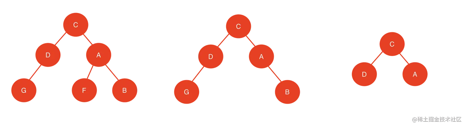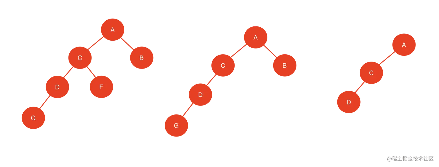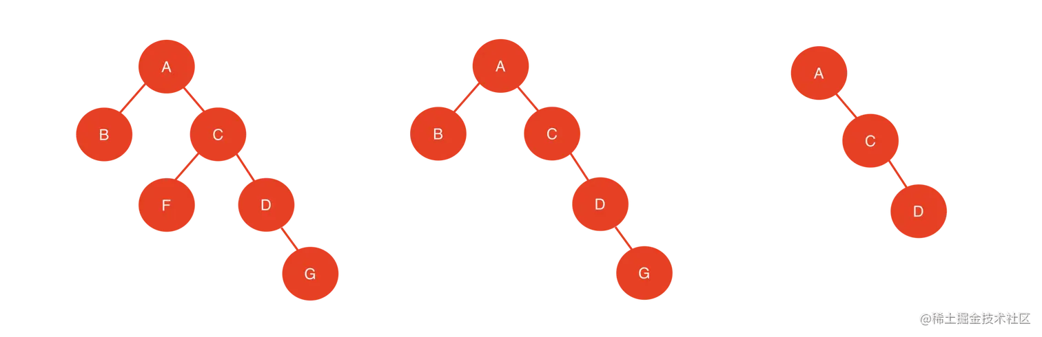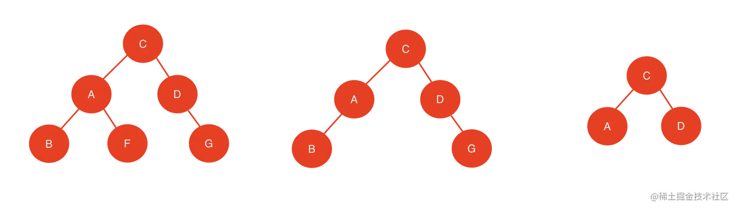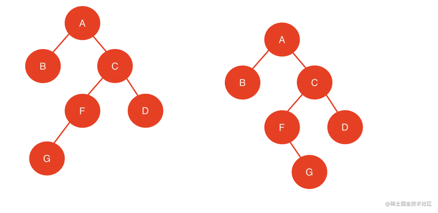 注意:如果B、F、G节点同时不存在,那么结果是一样的只不过是携带空节点的旋转而已