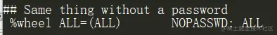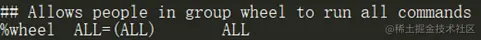 在 sudoers 文件中,配置 wheel 群组,就可以让加入这一群组的账户使用 sudo 指令。