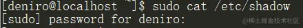但如果透过 sudo,即输入 sudo cat /etc/shadow 命令就可以执行。第一次使用,会被要求输入当前账户的密码。