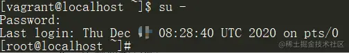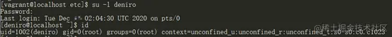 通过 -l xxx 就可以切换为其他账户。假设目前登录的身份是 vagrant,我们想切换为 deniro,就可以输入命令:su -l deniro:
