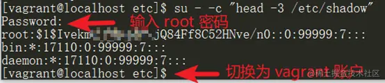 利用 -c 选项,我们会以 root 身份执行查阅影子文件的操作,之后直接切换回原始身份: