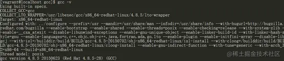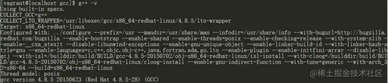 执行后,接着验证安装是否成功: gcc -v