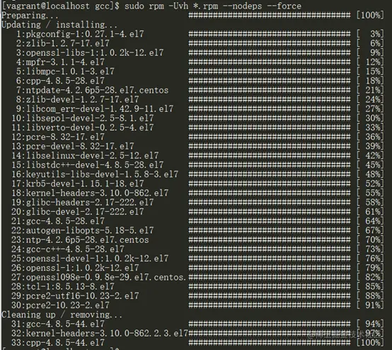进入存放.rpm文件的目录(root 权限),执行sudo rpm -Uvh *.rpm --nodeps –force进行安装: