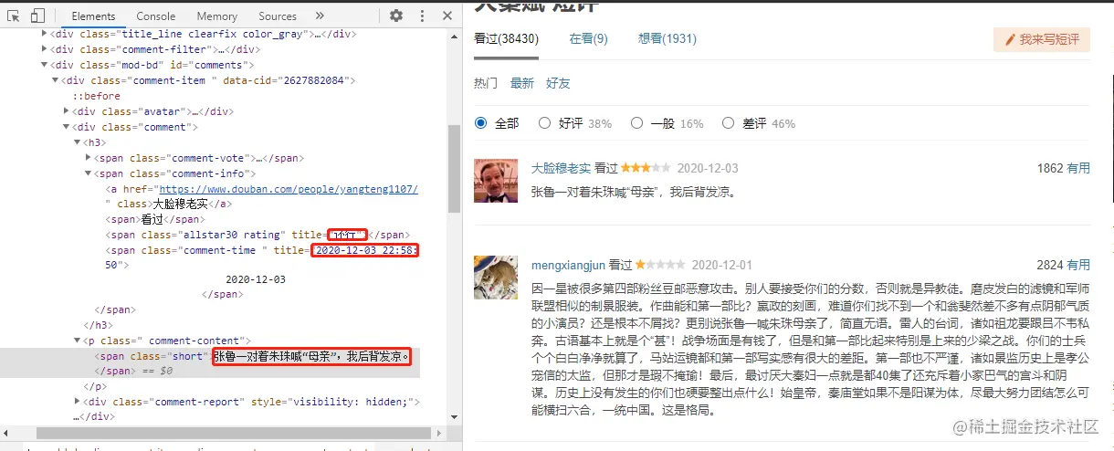 从上面的需求分析可以得出我们现在需要获取三项数据:'星级'、'评论'、'评论时间'