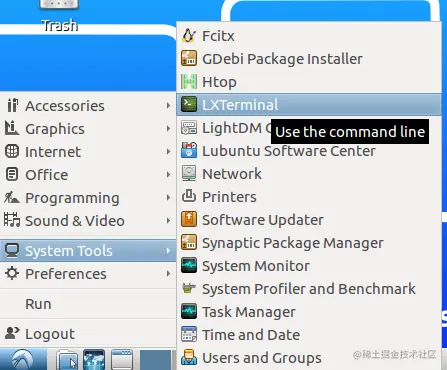 从左下角的菜单进入System Tools -> LXTeriminal