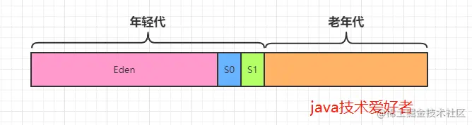 分代算法的原理就是根据对象的存货周期不同将堆分为年轻代和老年代。新生代又分为Eden 区,from Survivor 区(S0区),to Survivor 区(S1区),比例为8:1:1。