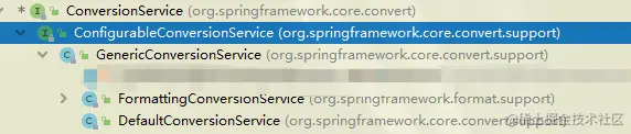 可以看到ConversionService和ConverterRegistry的继承树殊途同归,都直接指向了ConfigurableConversionService这个分支,下面就对它进行介绍。
