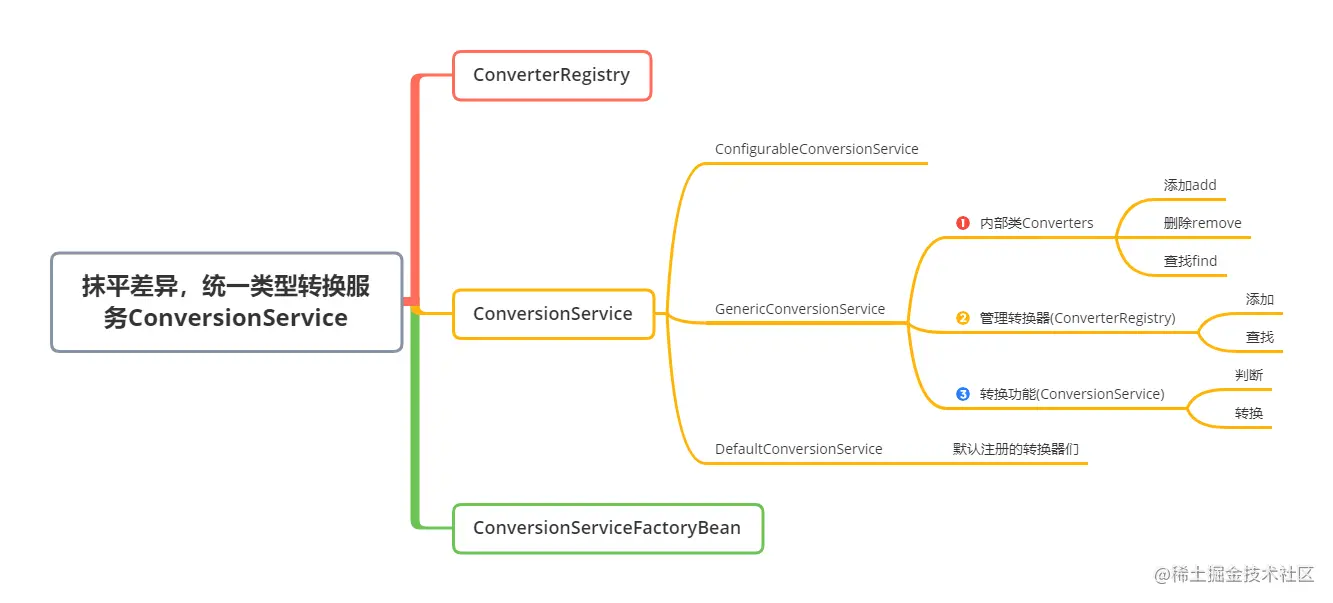 ConverterRegistry在文首多说一句:我翻阅了很多博客文章介绍它时几乎无一例外的提到有查找的功能,但实际上是没有的。Spring设计此API接口并没有暴露其查找功能,选择把最为复杂的查找匹配逻辑私有化,目的是让开发者使可无需关心,细节之处充分体现了Spring团队API设计的卓越能力。