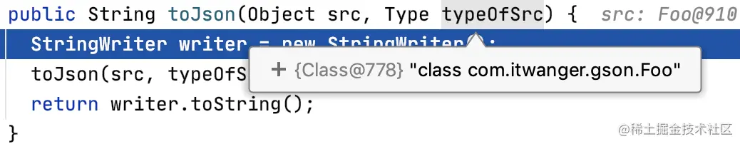 假如你 debug 的时候,进入到 toJson() 方法的内部,就可以观察到。