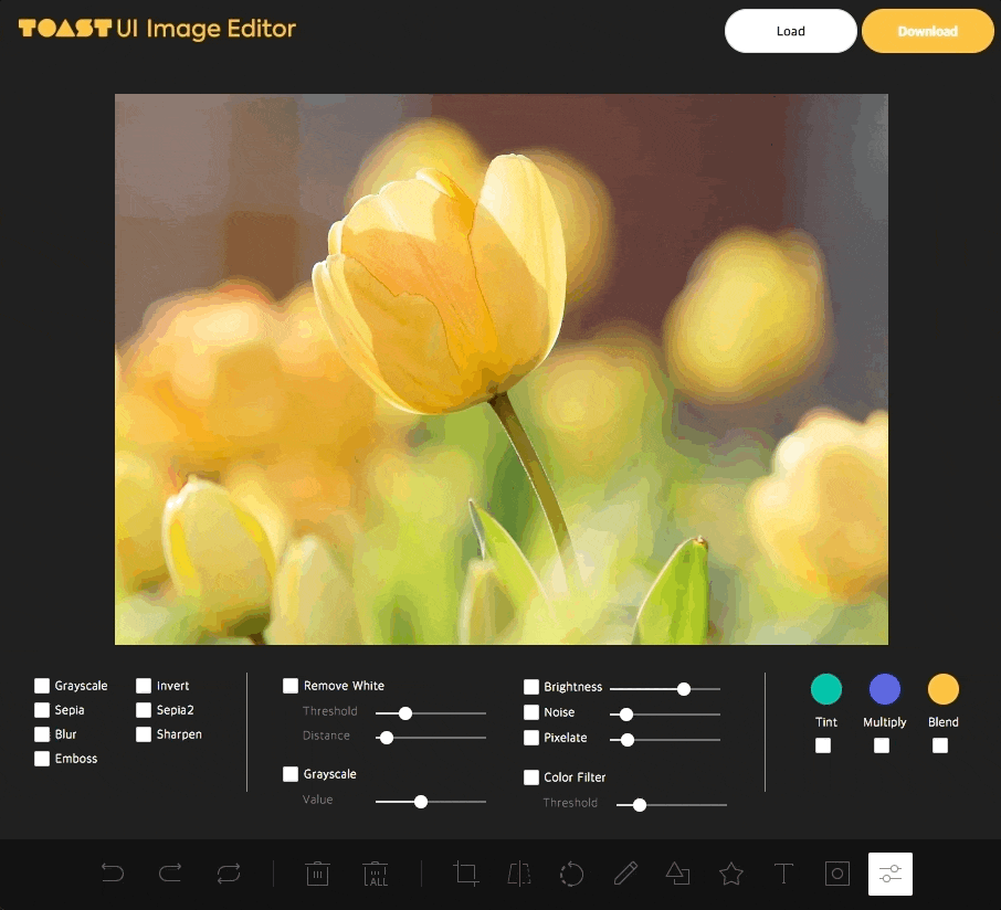 14、tui.image-editor:功能齐全的图片编辑器。支持图片剪裁、旋转、涂鸦等功能,实现了 Vue 和 React 封装的组件,便于整合进你的项目