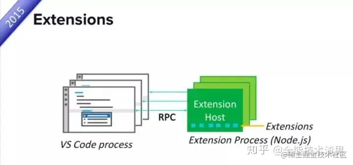这样做首先解决的问题就是稳定性,这个问题对于 VS Code 来说尤为重要。都知道 VS Code 基于 Electron,实质上是个 Node.js 环境,单线程,任何代码崩了都是灾难性后果。所以 VS Code 干脆不信任任何人,把插件们放到单独的进程里,任你折腾,主程序妥妥的。