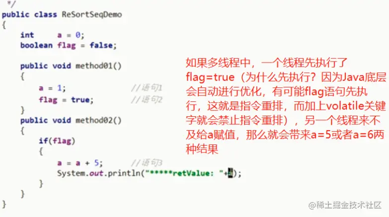 你可以理解为这是一个轻量级的synchronized, volatile关键字可以保证可见性,有序性,需要注意的是volatile关键字并不能保证原子性,可以禁止指令重排,通常用于并发编程,何为原子性,就是某一个线程在进行某个业务操作时,不可分割,要么同时成功,要么同时失败,可以使用原子类(如:AtomicInteger)来解决volatile不具备原子性的问题。何为指令重排,java底层在进行编译代码的时候,会进行指令重排,计算机底层在执行代码的时有时候并不会按你写的代码顺序走,为了性能它可能会重新排序,但是一切都得遵循数据依赖性原则(就是要重新排序的东西得先确保定义了这个东西),详细见下: