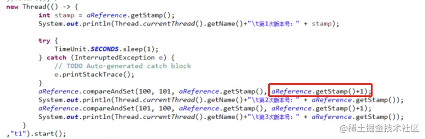 那当然问题出现了,就会有结局问题的办法,如何解决ABA问题呢,在修改值的时候加上版本号即可: