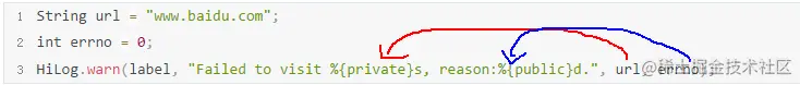 %{private}s和%{public}d这两个符号我们可用理解为占位符,真正打印到控制台上的值是后面的变量: