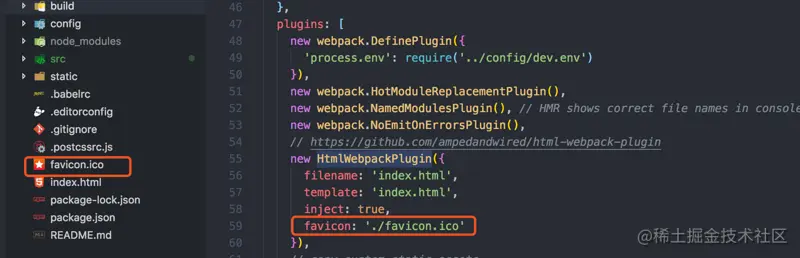vue项目在浏览器地址栏设置favicon.ico图标 皖北农民 2020-12-28 575 阅读1分钟 1.将自己的icon图片添加到link标签里 <link rel="shortcut icon" href="./favicon.ico" type="image/x-icon"> 2.将favicon.ico直接放在根目录下,在build文件夹下面的 webpack.dev.conf.js 中修改 plugins中的 new HtmlWebpackPlugin: 以上操作后刷新页面,若修改失败清理缓存。