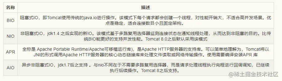 截止到8.0 tomcat支持的四种现场模型,