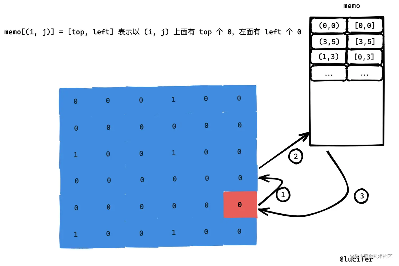 - 如果上方格子值是 0 ,去 memo 中查询。