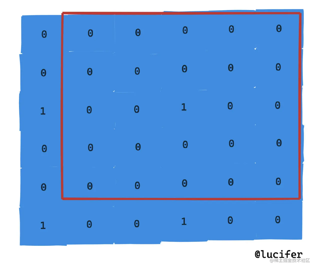 如下图,红色部分就是答案。只需要保证边全部是 0 就好了,所以里面有一个 1 无所谓的。