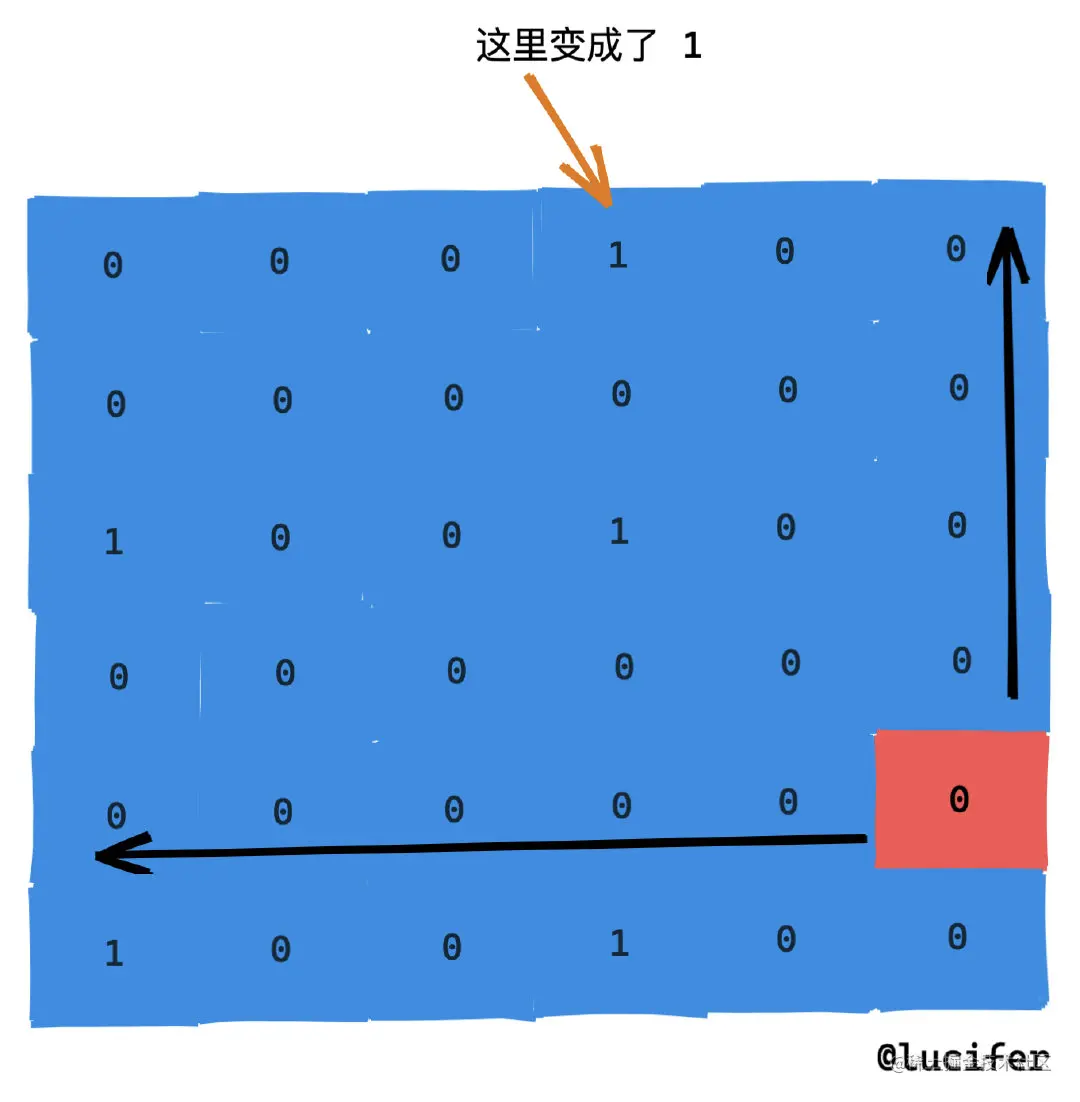 - (4,5) 找到上方相邻的格子,如果是 1 直接返回。