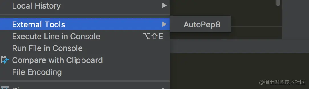 点击右键,选择 External Tools -> AutoPep8