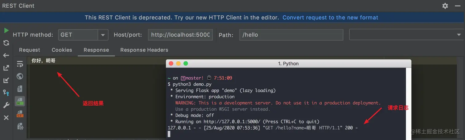 为了演示,我先使用 Flask 写一个 HTTP 接口
