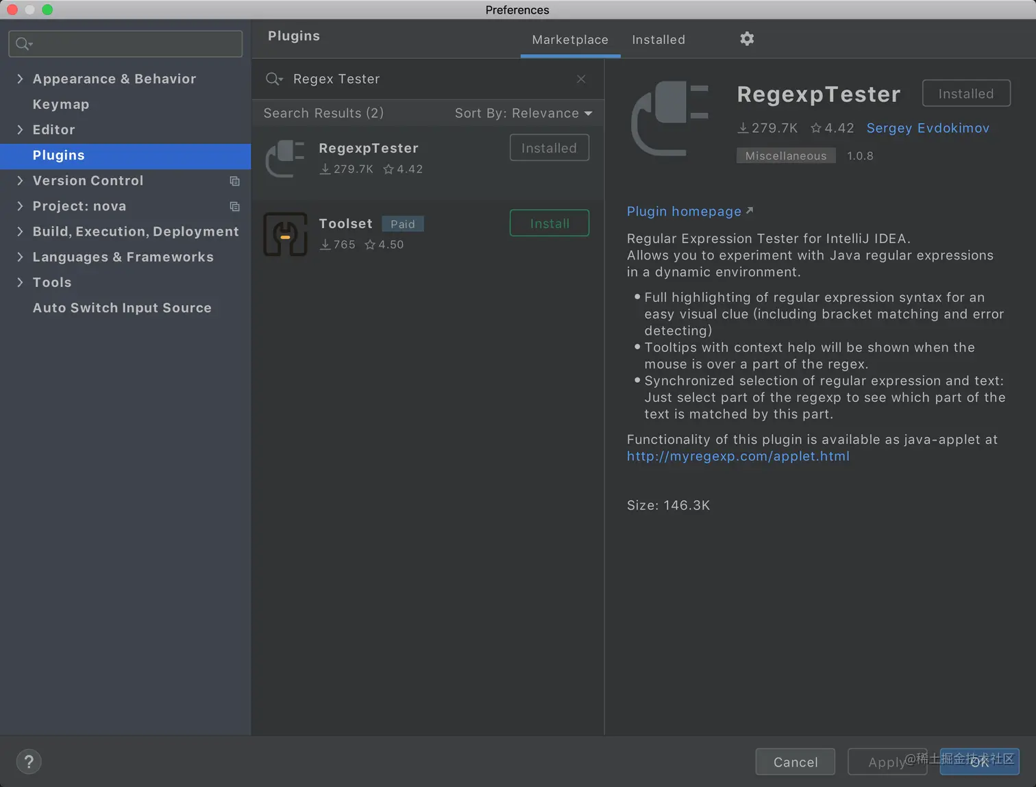 按照下图入口,安装 Regex Tester 插件: