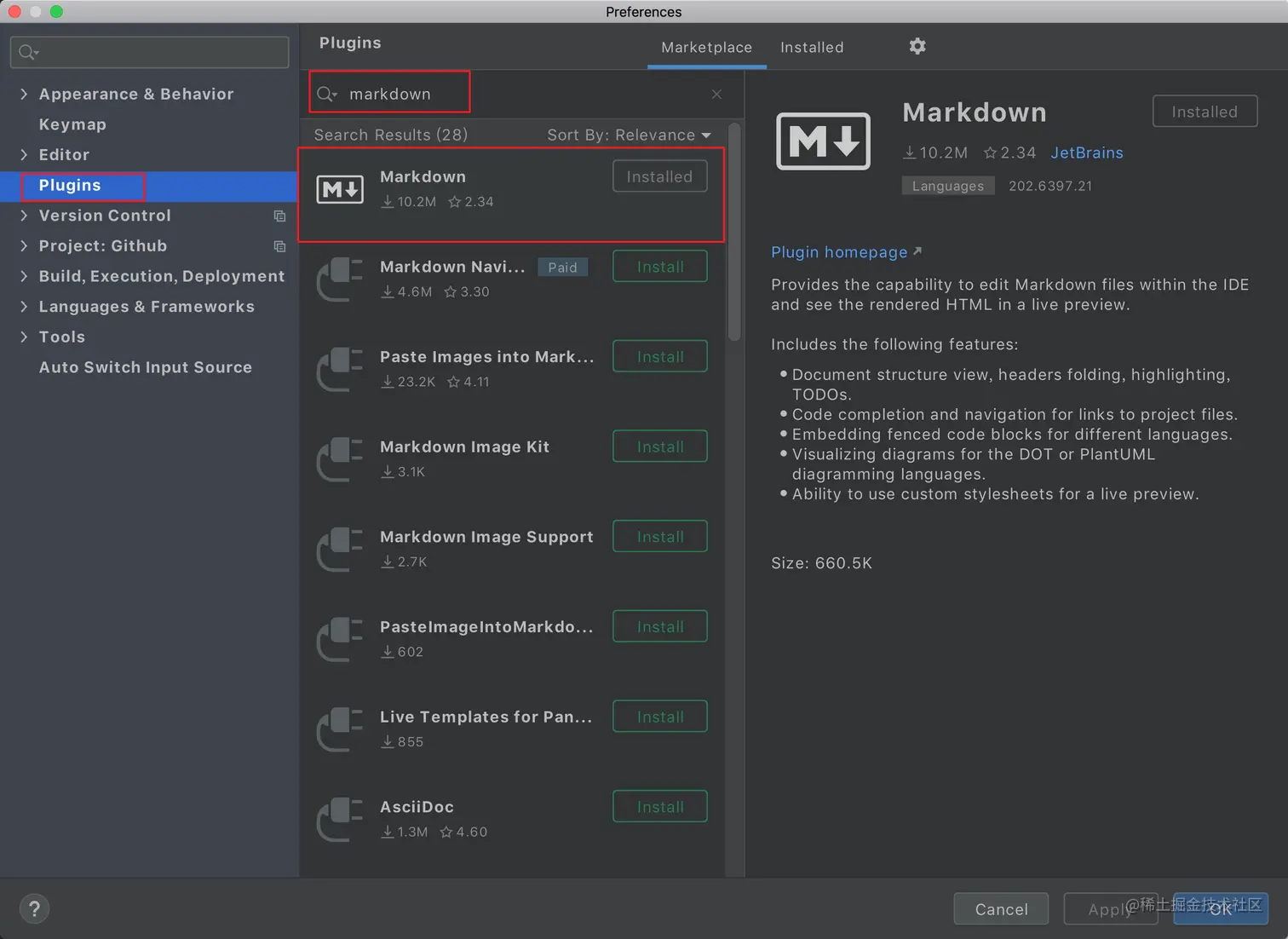 因此,如果要在 PyCharm 中阅读 Markdown 文档,可以装一下 Markdown support 这个插件。