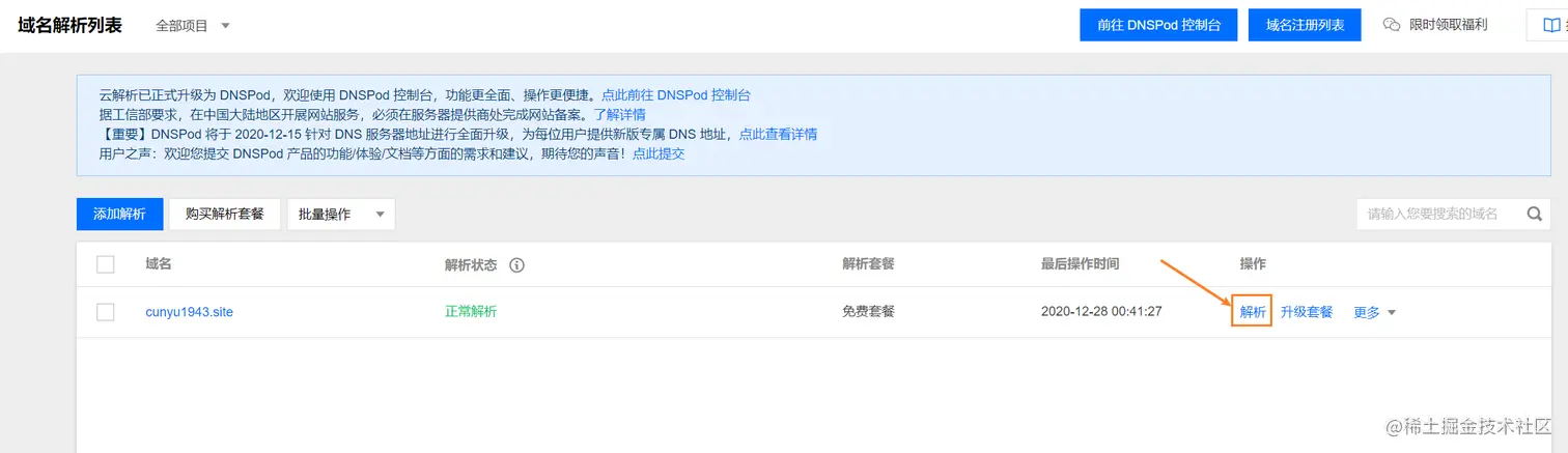 因为我的域名是在腾讯买的,所以这里以腾讯为例;
