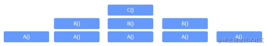 A()会调用B(),B()会调用C(),那么函数调用过程如图所示:
