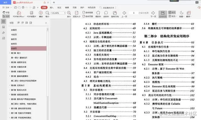 第三部分介绍了并发编程的性能调优,包括如何避免活跃性问题,如何提高高并发代码的性能和可伸缩性以获得理想的性能,以及在测试并发代码正确性和性能时的一些实用技术。