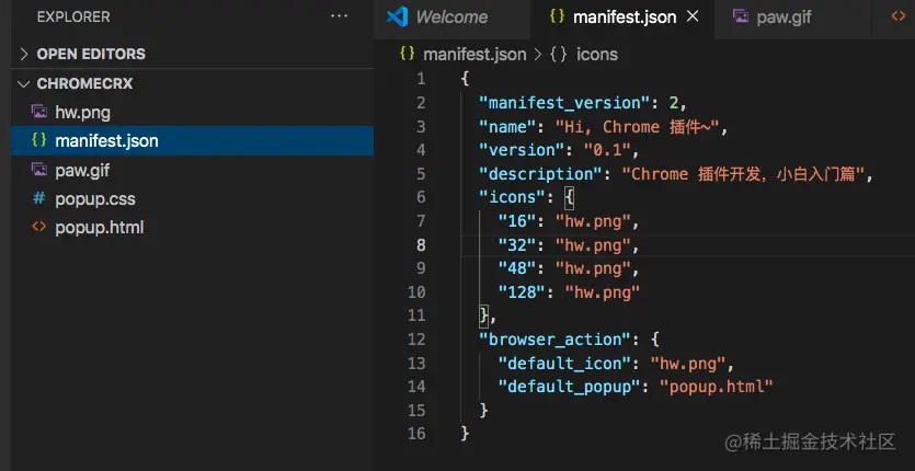 - 创建文件夹,创建 manifest.json 文件,准备 Icon png