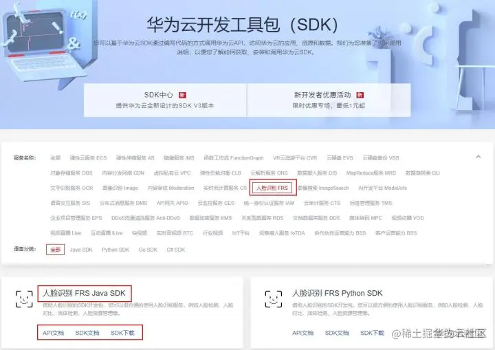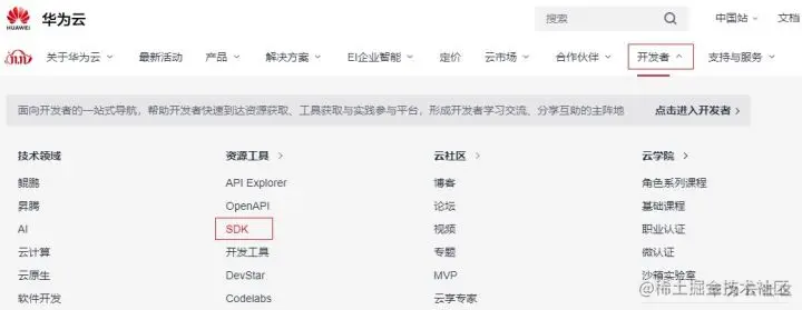 - 打开华为云官网->开发者->SDK(developer.huaweicloud.com/sdk?all):